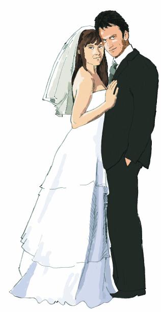 Komandi brúðarpør, ið skulu giftast í kirkjuni,