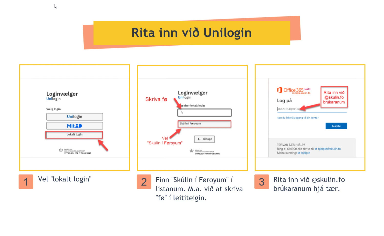 Fyri at rita inn á ibókina er neyðugt at nýta unilogin. Unilogin er knýtt at skulin.fo-brúkaranum. Tí er ikki neyðugt at kenna brúkaranavn og loyniorð til unilogin.